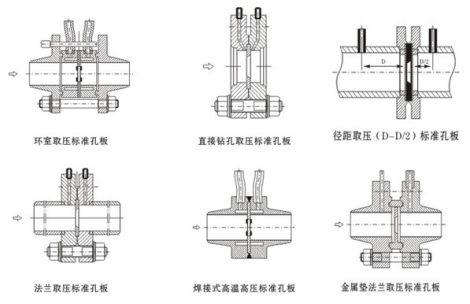 ②各種孔板流量計(jì)的結(jié)構(gòu)簡圖