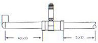 渦輪流量計(jì)傳感器應(yīng)安裝在便于維修,管道無振動(dòng)、無強(qiáng)磁干擾與熱輻射影響的場所。安裝在室外時(shí),應(yīng)有避直射陽光和放雨淋的措施。 (2)安裝要求及注意事項(xiàng) 渦輪流量計(jì)水平安裝的傳感器要求管道不應(yīng)有目測可覺察的傾斜(5°以內(nèi))垂直安裝的傳感器管道垂直偏差應(yīng)小于5°,流體方向應(yīng)有下向上。 不能停流的場所,應(yīng)加裝旁通和截止閥。 若流體含有雜質(zhì),則應(yīng)在上游側(cè)裝過濾器;若含有氣體,則應(yīng)在上游側(cè)裝消氣器。過濾器和消氣器的排污口和消氣口要通向安全的場所。 流量調(diào)節(jié)閥應(yīng)裝在傳感器下游,上游的截止閥在測量時(shí)應(yīng)全開,且都不得產(chǎn)生振動(dòng)和外泄。對于可能產(chǎn)生逆向流的流程應(yīng)加止回閥以防流體反向流動(dòng)。 傳感器應(yīng)與管道同心,密封墊圈不得凸入管路。傳感器不應(yīng)再水平管線的最高點(diǎn),以免管線內(nèi)聚集的氣體(如停流時(shí)混入空氣)停留在傳感器處,不易排出而影響測量。 傳感器前后管道應(yīng)支撐牢靠,不產(chǎn)生振動(dòng)。對易凝結(jié)流體要對傳感器及其前后管道采取保溫措施。 傳輸電纜常用雙芯或三芯帶屏蔽信號電纜,屏蔽信號電纜最好在顯示儀表(流量積算儀或流量計(jì)算控制儀)端接地,傳輸路徑不應(yīng)與動(dòng)力電源線平行,也不要敷設(shè)在動(dòng)力電源線集中的區(qū)域。 渦輪流量計(jì)安裝直管段要求: