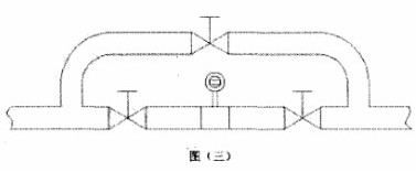 5.被測介質是嚴重污濁液體過容易在管道結垢的液體,可以在安裝傳感器的測量管道上加一個旁通管,以便于拆卸清洗。如圖三所示。