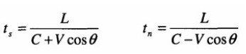 在管道中斜裝一對超聲波傳感器兩個傳感器之間的距離L為超聲波傳播聲程。那么,超標(biāo)在兩各傳感器之間的順流和逆流傳播時間分別為: