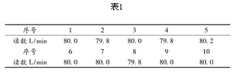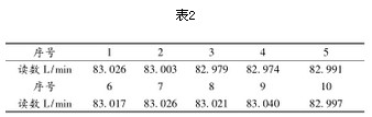 1 前言 目前,工業(yè)領(lǐng)域面臨著能源過度的問題,節(jié)能減排已成為大型生產(chǎn)企業(yè)急需解決的課題。流量計作為生產(chǎn)線的重要計量器具,不僅是直接反映生產(chǎn)能耗的基礎(chǔ)設(shè)備,也是控制能耗的首要環(huán)節(jié)。由于生產(chǎn)計劃,許多企業(yè)的流量計無法被卸下而需要在線校準。超聲波流量計作為一種精度高、非接觸式、易攜帶安裝的計量器具,廣泛被應(yīng)用于流量計的在線校準。因此,本文介紹如何應(yīng)用超聲波流量計在線校準浮子流量計并對其過程進行測量不確定度的評定。 2 超聲波流量計工作原理 超聲波在流體中的傳播速度與流體的流速有關(guān)。沿流體的順流方向,超聲波的傳播速度增大;逆流方向的傳播速度減小。同一超聲波沿流體不同流向產(chǎn)生了時間差,該差值與流體的流速存在一定的關(guān)系。假設(shè)直段管道內(nèi)有2個超聲波傳感器,傳感器1位于流體上游,傳感器2位于流體下游,則傳感器之間存在如下關(guān)系: (1) (2) 式中:L—兩個超聲波傳感器之間的直線距離; T12—沿流體逆向,超聲波從傳感器1傳播至傳感器2所用的時間; T21—沿流體順向,超聲波從傳感器2傳播至傳感器1所用的時間; C—超聲波在靜止流體中的傳播速度; x—L在管道中沿管道軸向的分量。 根據(jù)上式可知:當(dāng)傳感器的位置和管道幾何參數(shù)為已知量,則流體的流速正比于時間項。 3 浮子流量計在線測量 3.1 校準環(huán)境與安裝條件 超聲波流量計是根據(jù)超聲波在管道內(nèi)傳播時間差反映流體流速的,所以被測段的流體狀態(tài)對測量結(jié)果影響很大。測量時,應(yīng)避免被測段的流體處于湍流狀態(tài)。一般應(yīng)注意以下幾點: (1)計量現(xiàn)場應(yīng)無明顯振動,周圍無電磁干擾。 (2)探測器安裝位置的上游直管段長度至少為管徑的10倍以上,下游的直管段長度至少為管徑的5倍以上;上游30倍管徑的沿程內(nèi)應(yīng)沒有擾流因素,比如泵、閥引起的流速分布不均勻。 (3)管道始終充滿流體,流體內(nèi)不能含有大量的氣泡或異物。 (4)對于水瓶管道,為了避免滯留空氣或沉積物影響測量結(jié)果,在水平面的±45°內(nèi)安裝探測器。避免將探測器安裝在管道變形、凸起或焊接部分。 (5)如管道表面有涂層、腐蝕班或是不平整,用油漆稀釋劑和砂紙清除。 (6)查看被檢的浮子流量計是否有泄漏、振動的情況,刻度是否清晰,便于觀察。 (7)對于1.0和1.5級的浮子流量計,安裝傾斜角度不應(yīng)超過2°;2.5級及以下的浮子流量計不應(yīng)超過5°。 3.2 探測法的選擇 根據(jù)探測器的分布位置,探測法分為V法和Z法。V法:兩探測器均處于管道外同側(cè),探測器之間連線與管道軸線平行。Z法:兩探測器處于管道外兩側(cè),兩探測器之間連線與管道軸線交叉。在下列情況下使用Z法: (1)需要節(jié)省安裝空間(Z法的安裝空間約為V法的一半)。 (2)需要測量污水等渾濁的流體。 (3)管道內(nèi)有砂漿襯里或是較厚水垢。 3.3 測量步驟 (1)確認管道的內(nèi)、外徑;對于非標準的管道,用游標卡尺和測厚儀等工具測量管道的外徑與壁厚。 (2)在儀表中輸入相關(guān)參數(shù):管道內(nèi)、外徑;管道材料;流體介質(zhì);探測法類型等。 (3)待儀表調(diào)零后確定探測器安裝距離。 (4)在探測器表面涂上適量硅脂,根據(jù)“安裝條件”安裝探測器,查看超聲波信號接受是否正常。 (5)待被檢流量計與超聲波流量計讀數(shù)穩(wěn)定后,讀取兩儀表的流量值,計算示值誤差。 3.4 注意事項 (1)當(dāng)超聲波流量計信號異常或是無信號時,查看管道表面是否有涂層、探測器是否緊貼管道表面。在排除上述問題但仍信號異常的情況下,查看現(xiàn)場周圍是否有電磁干擾,比如:大功率水泵、變頻器、變壓器等。 (2)當(dāng)測量值與被檢示值存在明顯偏差時,查看探測器安裝位置是否合理。在滿足安裝條件的情況下,盡可能對安裝位置做調(diào)整:同一條管道布置有高低時,探測器安裝在較低的管路上;探測器盡量不要靠近管路的終端;盡量選擇流體向上流動的管路安裝探測器;管路內(nèi)結(jié)垢嚴重,更換管路。 (3)當(dāng)測量值存在明顯波動時,適當(dāng)設(shè)置阻尼參數(shù),延長響應(yīng)時間。 (4)當(dāng)流量發(fā)生變化但測量值保持不變時,檢查管道規(guī)格是否正確;探測器是否安裝在焊接部分;探測器安裝尺寸是否正確;探測器表面是否涂有足夠的潤滑脂;嘗試更換探測法類型;避免使用加長電纜。 4 不確定度評定實例 本文利用超聲波流量計在線校準浮子流量計,流量范圍:(16~160)L/min,流體介質(zhì)為水。 4.1 測量模型 利用超聲波流量計在線計量浮子流量計,相當(dāng)于采用標準表法進行計量。標準流量計和被檢流量計串聯(lián)在現(xiàn)有的流量管道上,刻度狀態(tài)相同,流量無需經(jīng)過修正。示值誤差根據(jù)下式: (3) 式中:qm—被檢浮子流量計的流量顯示值,L/min; qv—標準超聲波流量計的流量實際值,L/min; qmax—被校流量計的上限刻度值,L/min。 標準不確定度: 靈敏系數(shù):c1=1/qmax;c2=-1/qmax 4.2 不確定度的來源: (1)輸入量qm的不確定度 測量的重復(fù)性引入的不確定度:u(qm) 浮子流量計在80L/min時,對被檢流量計測量10次,結(jié)果如表1。 表1 測量平均值 ,標準方差S=0.13L/min,u(qm)= 。 (2)輸入量qv的不確定度: ①測量重復(fù)