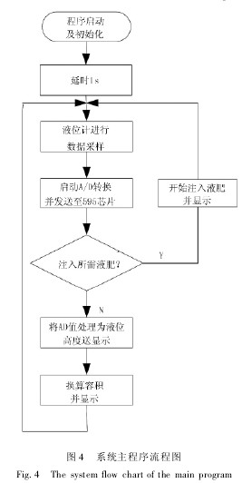 0引言 液位包括液位信號(hào)器和連續(xù)液位測(cè)量?jī)煞N。液位信號(hào)器是對(duì)幾個(gè)固定位置的液位進(jìn)行測(cè)量,用于液位的上、下限報(bào)警等;連續(xù)液位測(cè)量是對(duì)液位連續(xù)地進(jìn)行測(cè)量,廣泛應(yīng)用于農(nóng)田灌溉、定量施量、高爐沖渣水位測(cè)量、環(huán)境監(jiān)測(cè)等農(nóng)業(yè)生產(chǎn)領(lǐng)域,具有非常重要的意義。目前,對(duì)液位測(cè)量的精度要求不僅愈來(lái)愈高,且需要測(cè)量?jī)x能夠適應(yīng)一些特殊環(huán)境,如高溫、高壓、強(qiáng)放射性及強(qiáng)腐蝕性等條件。液態(tài)肥因其生產(chǎn)費(fèi)用低、肥效高、易吸收、節(jié)支增產(chǎn)效果顯著及施用過(guò)程中可以根據(jù)需要加入土壤所缺少的植物營(yíng)養(yǎng)元素等優(yōu)勢(shì)迅速得到了廣泛應(yīng)用。而變量施肥作為農(nóng)業(yè)的重要部分,其技術(shù)基礎(chǔ)就是對(duì)液肥液位的準(zhǔn)確控制。目前市場(chǎng)上,液位控制系統(tǒng)大致可分為以下兩種: 1)機(jī)械式控制系統(tǒng)。機(jī)械式控制系統(tǒng)結(jié)構(gòu)簡(jiǎn)單、成本低廉;但這種控制裝置故障多、誤動(dòng)作多,且只能單獨(dú)控制,與計(jì)算機(jī)進(jìn)行通信較難實(shí)現(xiàn)。 2)交流調(diào)壓/變頻調(diào)速控制系統(tǒng)。該系統(tǒng)是通過(guò)安裝在水泵出口管道上的壓力傳感器,把出口壓力變成標(biāo)準(zhǔn)工業(yè)電信號(hào)的模擬信號(hào),經(jīng)過(guò)前置放大、多路切換、A/D變換成數(shù)字信號(hào)傳送到單片機(jī),經(jīng)單片機(jī)運(yùn)算與給定量的比較,進(jìn)行PID運(yùn)算,得出調(diào)節(jié)參量;經(jīng)由D/A變換給調(diào)壓/變頻調(diào)速裝置輸入給定端,控制其輸出電壓變化,來(lái)調(diào)節(jié)電機(jī)的轉(zhuǎn)速,以達(dá)到控制水位的目的。 本文以液態(tài)施肥機(jī)為依托,針對(duì)一定體積的液肥進(jìn)行液位試驗(yàn),通過(guò)以單片機(jī)和投入式液位計(jì)為主要硬件資源設(shè)計(jì)硬件電路,畫(huà)出相應(yīng)的軟件流程圖進(jìn)行測(cè)試。數(shù)據(jù)分析驗(yàn)證表明:該傳感器在液肥液位測(cè)量中安裝維護(hù)方便,能適應(yīng)液肥這種特殊環(huán)境,其容量和液位高度的測(cè)量誤差也滿(mǎn)足實(shí)際要求。 1系統(tǒng)工作原理及組成 微壓式液位計(jì)采用的是壓力敏感元件實(shí)現(xiàn)力-電轉(zhuǎn)換。傳感器的液位量程是0~1.3m,且這段量程液位所對(duì)應(yīng)的深度約合壓力相比其他要小很多,因而稱(chēng)其為“微壓式”。本系統(tǒng)是所選的正是微壓式傳感器,它將液位信號(hào)轉(zhuǎn)換為4~20mA標(biāo)準(zhǔn)電信號(hào)輸出。 若設(shè)所測(cè)液體密度為ρ,液位高度為h,大氣壓為ρ0,重力加速度為g,則液體所受壓力p=ρgh+ρ0。這時(shí),為抵消大氣壓力變化所帶來(lái)的測(cè)量誤差,傳感器變送器部分采用導(dǎo)氣電纜將大氣壓力ρ0引入敏感元件的負(fù)壓腔,進(jìn)而使p=ρgh。顯然,若已知液體密度,通過(guò)測(cè)取壓力p就可換算出相應(yīng)的液位高度。 1.1單片機(jī)選型 該系統(tǒng)結(jié)構(gòu)相對(duì)簡(jiǎn)單、運(yùn)行速度快,考慮到功能和成本兼顧,采用以擴(kuò)展性51系列單片機(jī)STC12C5412AD為核心控制元件。該芯片具有12kB用戶(hù)可自行安排的FLASH及FEPROM空間比例;在同樣的工作頻率下,平均指令運(yùn)算速度是普通8051的8~12倍[4],滿(mǎn)足系統(tǒng)對(duì)數(shù)據(jù)處理的要求,且掉電模式可由外部中斷喚醒,適用車(chē)載信息系統(tǒng)。系統(tǒng)設(shè)計(jì)方案圖如圖1所 1.2投入式液位計(jì)選型 其基于所測(cè)液體靜壓與該液體的高度成比例的原理,再將靜壓轉(zhuǎn)換為電信號(hào),實(shí)現(xiàn)非電量到電量的變換,利用這一特性來(lái)完成對(duì)液位的測(cè)量。主要技術(shù)參數(shù)如下:量程1.3m,精度0.5%Fs,電壓18~36VDC,輸出4~20mA。 其優(yōu)點(diǎn)包括:①能實(shí)時(shí)測(cè)量罐內(nèi)各點(diǎn)液位;②直流4~20mA標(biāo)準(zhǔn)電流信號(hào)輸出;③密封性好,測(cè)量元件不與液肥直接接觸,避免了液肥對(duì)元件的腐蝕。 2硬件電路設(shè)計(jì) 2.1電源電路設(shè)計(jì) 電源電路圖如圖2所示。圖2中,為了保證液位傳感器能獲得24V的直流供電,選用具有DC-DC單片控制電路功能的MC34063芯片,片內(nèi)包含有溫度補(bǔ)償帶隙基準(zhǔn)源,能輸出1.5A的開(kāi)關(guān)電源,且是使用最少的外接元件構(gòu)成的升壓變換器、降壓變換器和電源反向器[5]。 本系統(tǒng)電源電路采用具有升壓轉(zhuǎn)換作用的MC34063芯片,與電感L、二極管D3、三極管TIP122一起構(gòu)成電源電路。若TIP122導(dǎo)通時(shí),+12V的輸入電壓經(jīng)采樣限流電阻R1、R2,流經(jīng)電感L,隨著電感L電流增加,其兩端進(jìn)行儲(chǔ)存能量。此時(shí),二極管D3是防止電容C3對(duì)地放電,并由電容C3向負(fù)載供電;若TIP122斷開(kāi)時(shí),電感L及12V的輸入電壓對(duì)電容C3充電的同時(shí)電容C3對(duì)負(fù)載供電,負(fù)載電壓穩(wěn)定在+24V,穩(wěn)壓的負(fù)反饋信號(hào)是電阻R7、R8的分壓輸入到MC36063的5腳。 2.2檢測(cè)電路設(shè)計(jì) 硬件部分的核心為STC12C5412AD,工作電壓由LM2576從24V轉(zhuǎn)變?yōu)?V來(lái)提供。同時(shí),用MCU