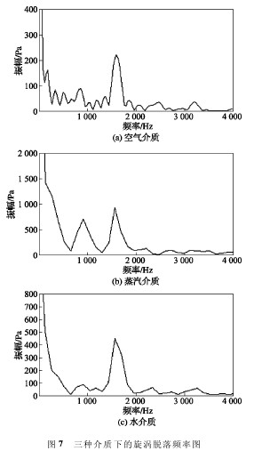 通過讀取圖 7 三種介質旋渦脫落頻率圖最高