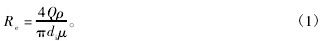 式中:Qe為流體流量,m3/s;di為內(nèi)徑,m;μ為流體動(dòng)力黏度,Pa·s;ρ為流體密度,kg/m3。