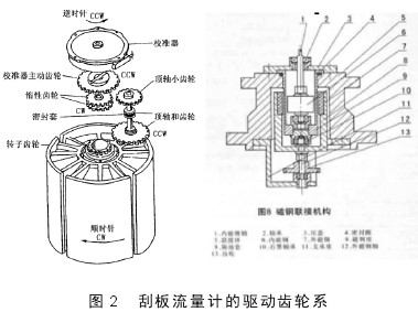 (4)出軸密封部分:出軸密封部分是連接流量計表頭和流量計殼體的部分,它一般有三種結構:磁性連軸器、機械密封式的連接、“O”型密封圈式的連接。這里我們主要分析以磁性聯軸器為連接的結構易出現的故障。磁性聯軸器脫磁,包括打滑,溫度升高,都非常容易引起脫磁。無法轉動,就帶動不了精度修正器轉動,那么依次向上,也就不發(fā)生轉動。出軸密封的聯軸器脫磁,不能發(fā)生轉動,帶動上面的精度修正器里面的齒輪也不發(fā)生轉動,所以字輪也不再轉動(圖2)。
