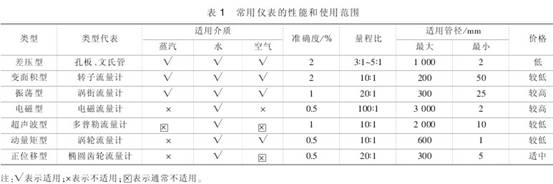 流量儀表的分類方法很多,至今國內(nèi)外還沒有統(tǒng)一的標(biāo)準(zhǔn)。 工業(yè)生產(chǎn)過程中常用的七大類流量儀表的型式為:差壓型(孔板、文氏管),變面積型(轉(zhuǎn)子流量計),振蕩型(渦街流量計),電磁型(電磁流量計),超聲波型(多普勒流量計),動量矩型(渦輪流量計),正位移型(橢圓齒輪流量計)。表1簡要列出幾種儀表的性能和使用范圍。
