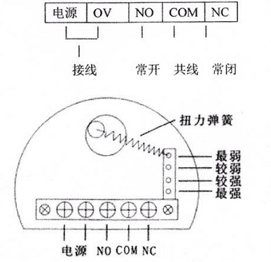 2.具體方法:打開接線盒,將扭力彈簧靠近多孔一端拿出,根據(jù)需要插入對應(yīng)的孔中(靠近端子臺的孔扭力最弱)。