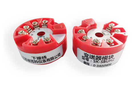SK-SBUHZ型液位變送器模塊是將輸入的電阻信號轉(zhuǎn)換成線性輸出的4~20mA電流信號,從而達到與磁翻板液位計配套使用,通過磁翻板液位計內(nèi)部浮子的位置的變化而將磁翻板液位計內(nèi)部對應(yīng)的液位變化線性地對應(yīng)輸出液位高度。