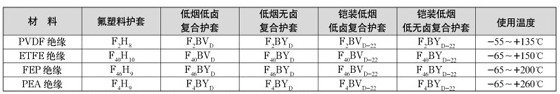 注:表中代號(hào)PVDF-聚偏二氟乙烯,ETFE-乙烯四氟乙烯共聚物,F(xiàn)EP-聚全氟乙丙烯