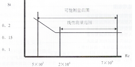 由上式可見(jiàn),VSF輸出的脈沖頻率信號(hào)不受流體物性和組分變化的影響,即儀表系數(shù)在一定雷諾數(shù)范圍內(nèi)僅與旋渦發(fā)生體及管道的形狀尺寸等有關(guān)。但是作為流量計(jì)在物料平衡及能源計(jì)量中需檢測(cè)質(zhì)量流量,這時(shí)流量計(jì)的輸出信號(hào)應(yīng)同時(shí)監(jiān)測(cè)體積流量和流體密度,流體物性和組分對(duì)流量計(jì)量還是有直接影響的。