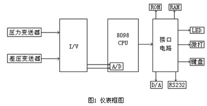 根據(jù)上述的模型,作者研制成功與單孔板配套的測(cè)量?jī)x表。該儀表核心是Intel 8098 CPU,配置32K ROM和8K RAM,還包括8個(gè)LED,8個(gè)按鍵以及微型打印機(jī)。一臺(tái)開關(guān)穩(wěn)壓電源為儀表和變送器提供電能。