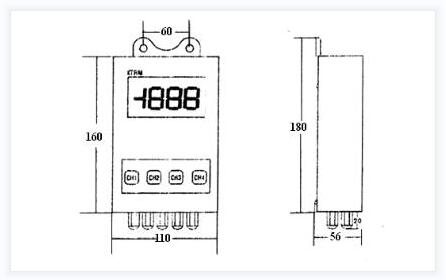 15.安裝方式: 壁掛式:160(高)×110(寬)×56(厚);兩固定孔距離60mm.固定螺釘M4×10mm.