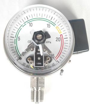 普通壓力表和接觸裝置兩個(gè)獨(dú)立部分組成。工作穩(wěn)定可靠,廣泛用于測(cè)量對(duì)銅、鋼及其合金無(wú)腐蝕作用的液體、氣體等介質(zhì)的壓力和發(fā)出電信號(hào),用于自動(dòng)控制系統(tǒng),接通控制電路,達(dá)到自動(dòng)控制的報(bào)警得目的。